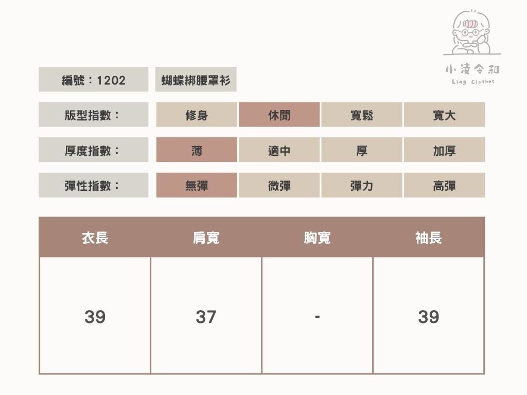 商品詳情 Model:163cm / 55kg 每件商品皆為手工測量,尺寸可能有正負3cm的範圍。 下單前可私訊IG客服詢問尺寸及適合尺寸建議。 商品材質:90%錦綸、10%氨綸 蝴蝶綁腰罩衫 TWD $300 TWD $300