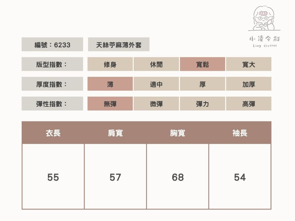 商品詳情 Model:163cm / 55kg 每件商品皆為手工測量,尺寸可能有正負3cm的範圍。 下單前可私訊IG客服詢問尺寸及適合尺寸建議。 商品材質:45%天絲、55%苧麻 天絲苧麻薄外套 TWD $790 TWD $790