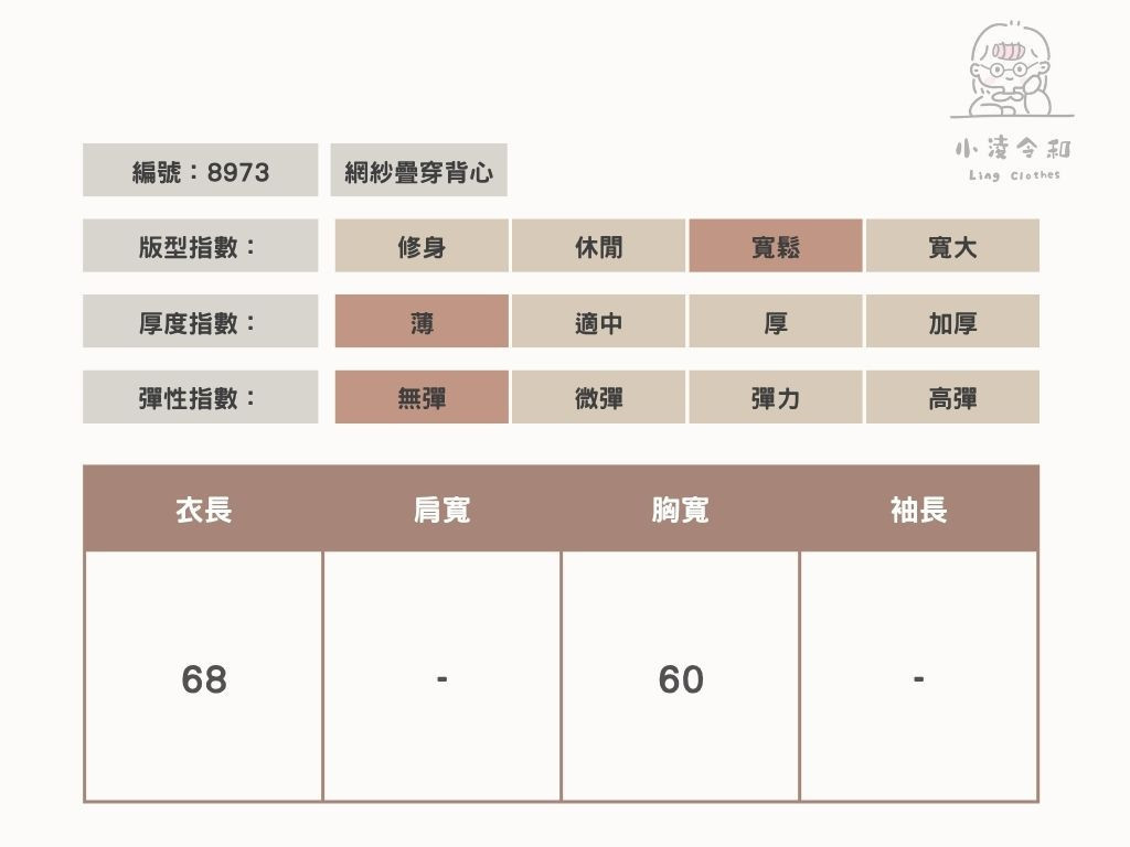 商品詳情 Model:163cm / 55kg 每件商品皆為手工測量,尺寸可能有正負3cm的範圍。 下單前可私訊IG客服詢問尺寸及適合尺寸建議。 商品材質:93%滌綸、7%氨綸 網紗疊穿背心 TWD $430 TWD $430