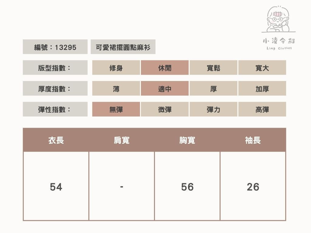 商品詳情 Model:163cm / 55kg 每件商品皆為手工測量,尺寸可能有正負3cm的範圍。 下單前可私訊IG客服詢問尺寸及適合尺寸建議。 商品材質:58%人棉、42%滌綸 可愛裙擺圓點麻衫 TWD $620 TWD $620