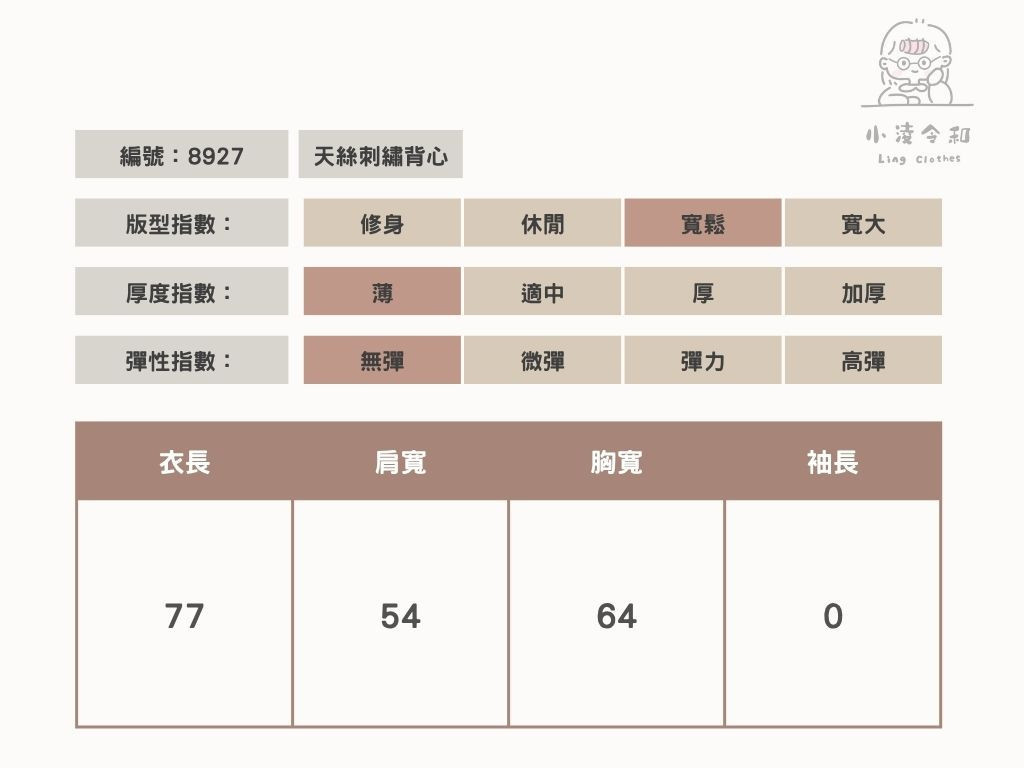 商品詳情 Model:163cm / 55kg 穿著寬鬆舒適 每件商品皆為手工測量,尺寸可能有正負3cm的範圍。 下單前可私訊IG客服詢問尺寸及適合尺寸建議。 商品材質:85%天絲、15%棉 天絲刺繡背心 TWD $880 TWD $880