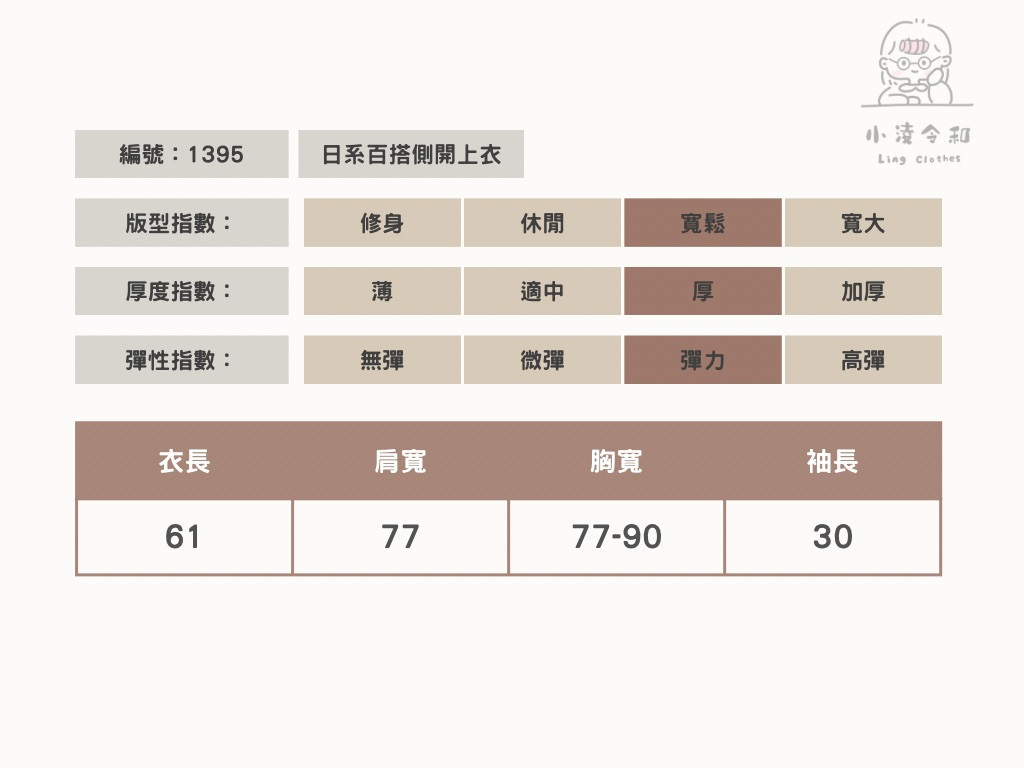 商品詳情 Model:168cm / 65kg 每件商品皆為手工測量,尺寸可能有正負3cm的範圍。 下單前可私訊IG客服詢問尺寸及適合尺寸建議。 商品材質:10%羊毛 45%尼龍 45%滌綸 日系百搭側開上衣 TWD $690 TWD $690