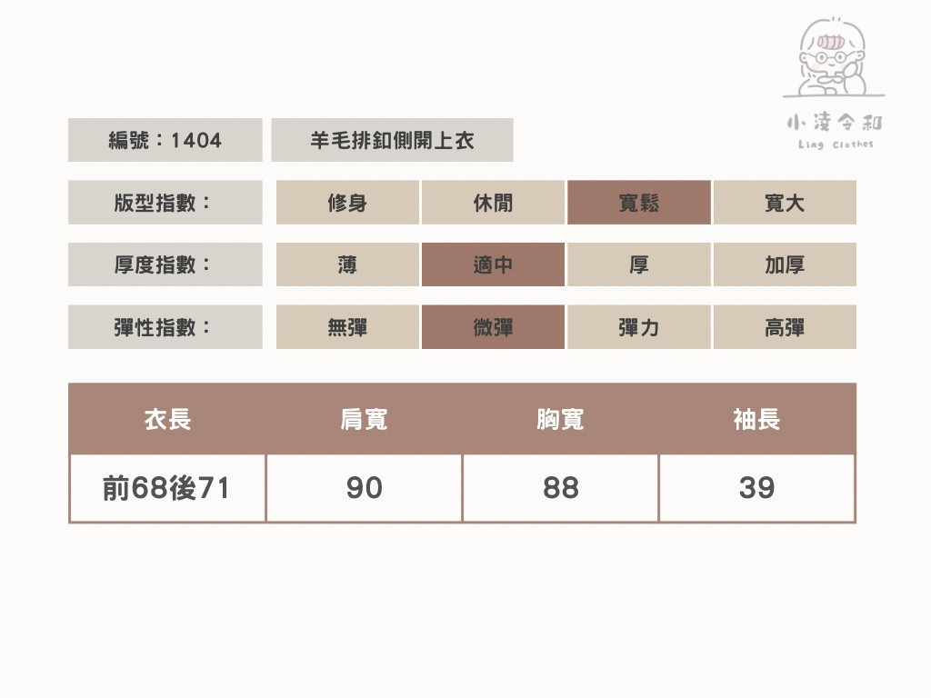 商品詳情 Model:168cm / 65kg 每件商品皆為手工測量,尺寸可能有正負3cm的範圍。 下單前可私訊IG客服詢問尺寸及適合尺寸建議。 商品材質:10%羊毛 45%尼龍 45%滌綸 羊毛排釦側開上衣 TWD $690 TWD $690