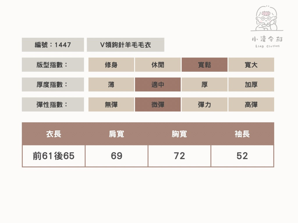 商品詳情 Model:168cm / 65kg 每件商品皆為手工測量,尺寸可能有正負3cm的範圍。 下單前可私訊IG客服詢問尺寸及適合尺寸建議。 商品材質:10%羊毛 45%尼龍 45%滌綸 V領鉤針羊毛毛衣 TWD $750 TWD $750