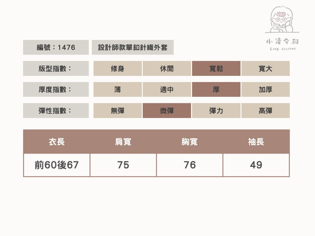 商品詳情 Model:168cm / 65kg 每件商品皆為手工測量,尺寸可能有正負3cm的範圍。 下單前可私訊IG客服詢問尺寸及適合尺寸建議。 商品材質:10%羊毛 45%尼龍 45%滌綸 設計師款單釦針織外套 TWD $990 TWD $990