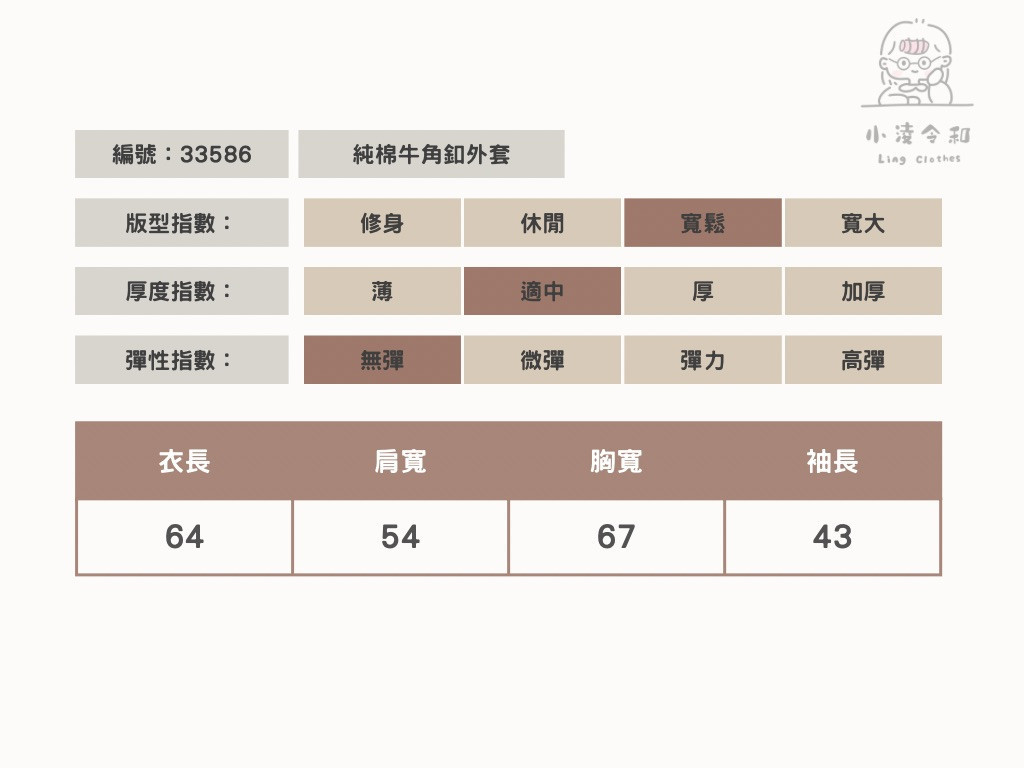 商品詳情 Model:168cm / 65kg 每件商品皆為手工測量,尺寸可能有正負3cm的範圍。 下單前可私訊IG客服詢問尺寸及適合尺寸建議。 商品材質:100%棉 純棉牛角釦外套 TWD $1,145 TWD $1,145
