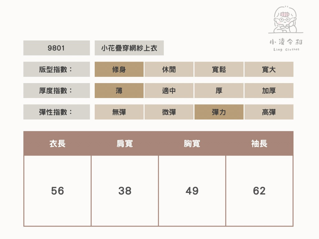 商品詳情 Model:163cm / 55kg Model:168cm / 65kg 每件商品皆為手工測量,尺寸可能有正負3cm的範圍。 下單前可私訊IG客服詢問尺寸及適合尺寸建議。 商品材質:92%滌綸、8%氨綸 小花疊穿網紗上衣 TWD $490 TWD $490