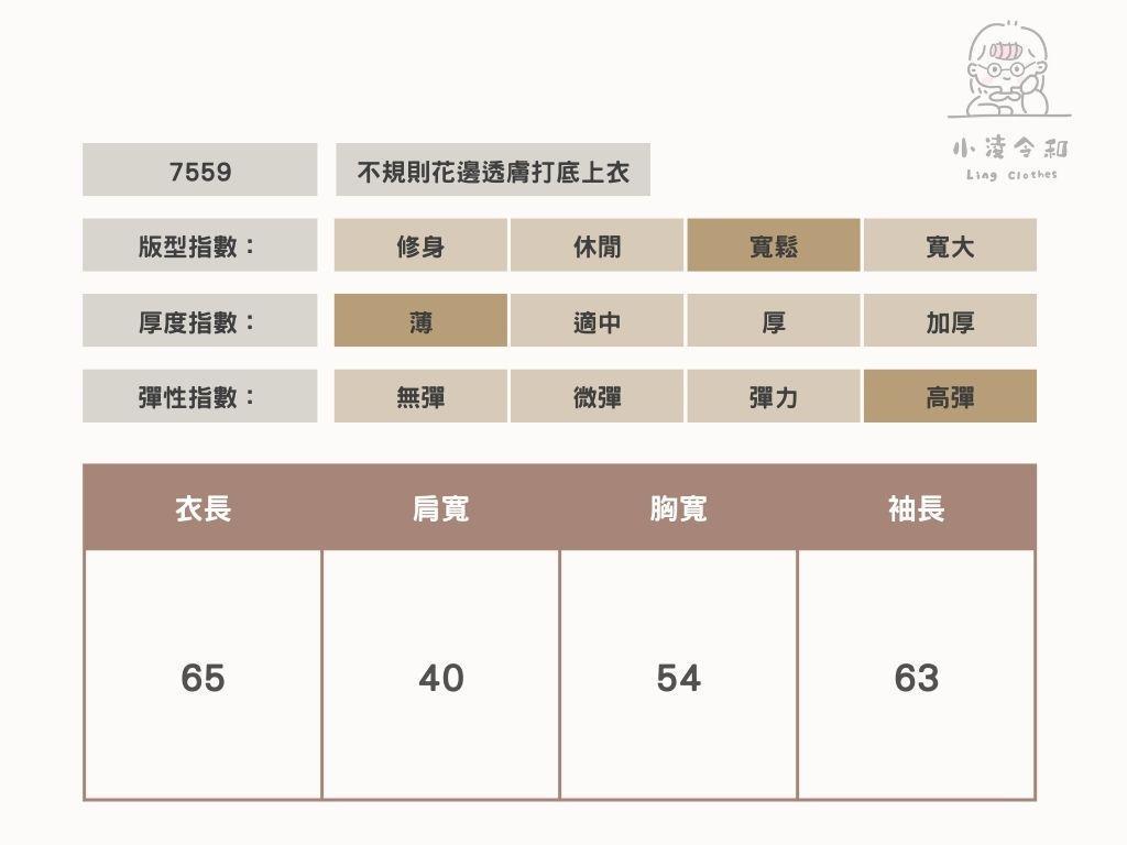 商品詳情 Model:168cm / 65kg 舒適 Model:165cm / 75kg 舒適 每件商品皆為手工測量,尺寸可能有正負3cm的範圍。 下單前可私訊IG客服詢問尺寸及適合尺寸建議。 商品材質:92%滌綸、8%氨綸 不規則花邊透膚打底上衣 TWD $590 TWD $590